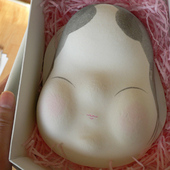 しまったので、展示のためにmisato額を特注しました!!ですが、これが大変。ちょっと形を自由にするだけで、作りますよと言ってくれた都内の額縁屋さんはほとんどなく、結局、地元の家具屋さんにお願いして作って頂きました。効率化を図ると、こういうちょっとした融通っが難しいんですね。ほんととほほ。。山岸製作所のみなさん、どうもありがとうございました!!そして、このお面!ninyuの藍ちゃんがパーティーの時に持って来てくれたもの。中には節分の福豆が入っていて、包装紙は福笑いになっていて、なんとも粋でございました。さらになんとお面も食べられるのだそうです!awesome!