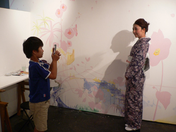着物姿が美しい母、イラストレーター平松昭子さんを撮るアンジ先生と撮影byアンジ先生