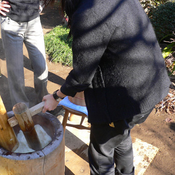 おもちつきなんて、何年ぶり?!とってもいいお天気の朝、徹夜明けのjunjunを誘って。