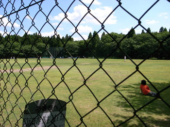 美術館の敷地内には何故か野球場があります。地域のみなさん、まさに余暇を楽しんでる